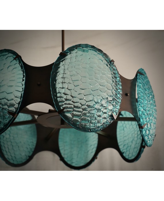 Exciting pastel blue color gradation for this Murano chandelier, different shades together for...
