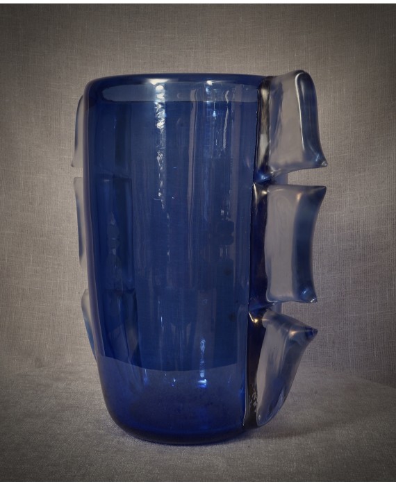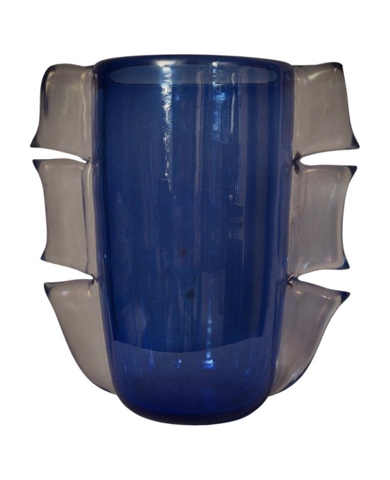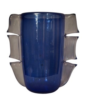 Splendid Murano blu glass vase. Note the beautiful transparent wings applied to the sides of...