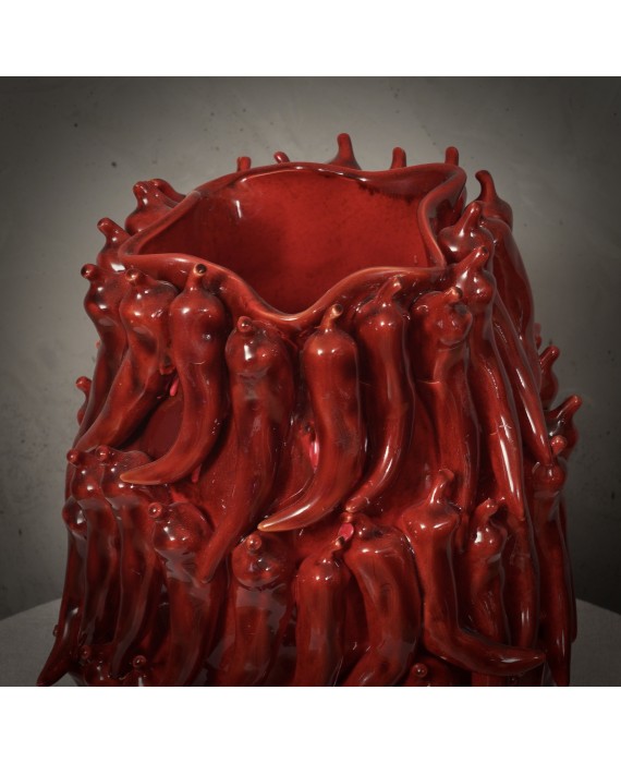 Splendido vaso di Ceramica Veneta, in un bellissimo colore rosso peperoncino, un design...