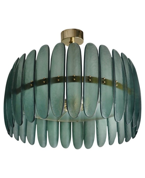Fantastico lampadario rotondo in vetro di Murano e ottone lucido. Da notare la forma delle...